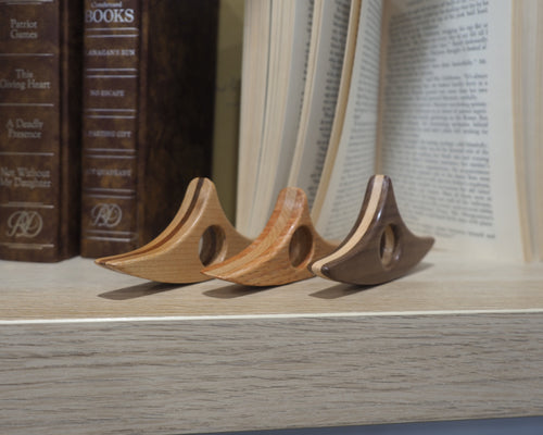 A lifelong reader of Ken Follett, Stephen King, and rich histories, Igor merged his passions for woodworking and books into the Tryzub Timberworks book holder — a small, elegant tool that keeps your book open with ease, letting you read anywhere in comfort.